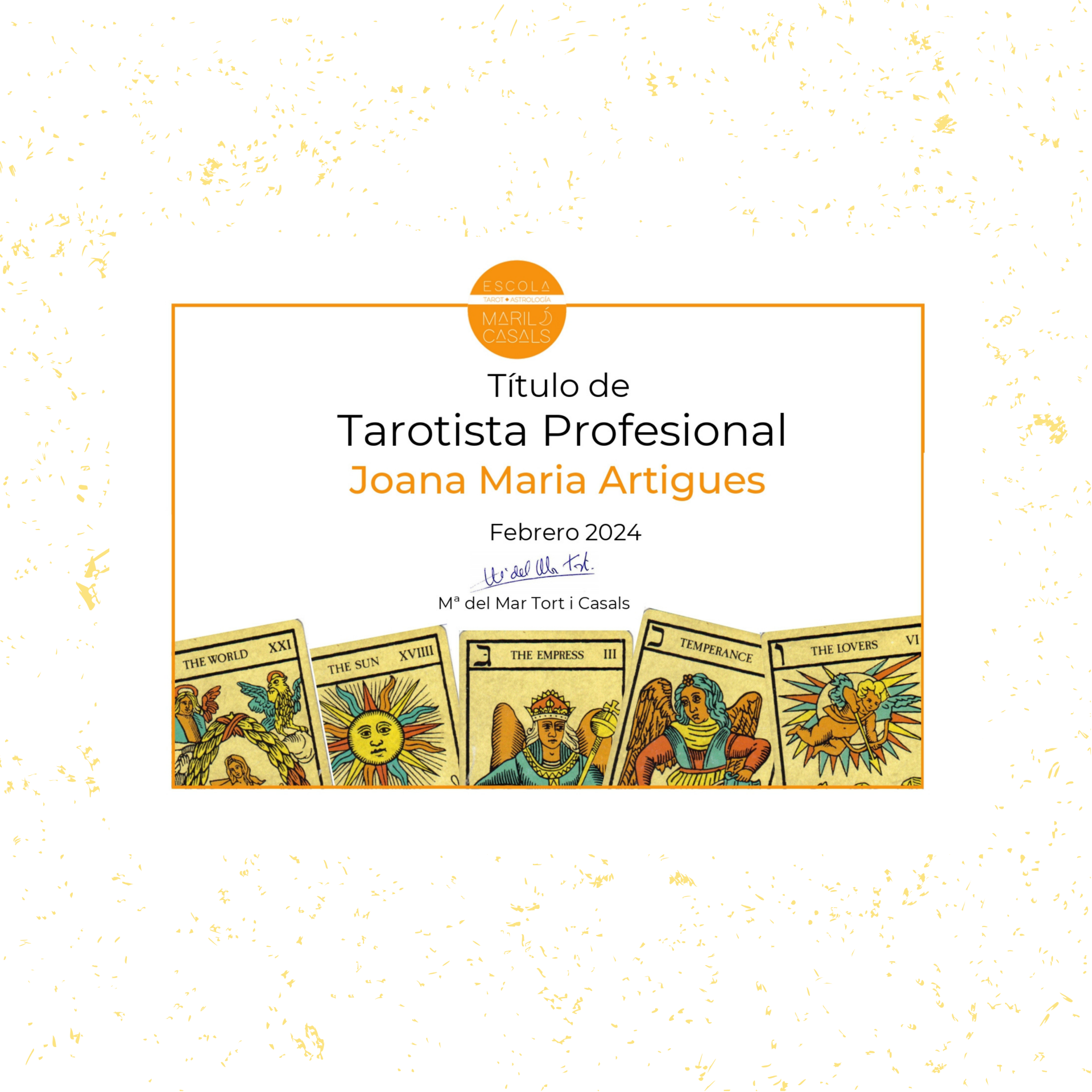 Inicia un proceso de autoconocimiento mediante el análisis del símbolo y su aplicación práctica. Mi metodología se fundamenta en un servicio de rigor profesional, certificada por la reconocida Escola Mariló Casals y formada en Tarot Terapéutico por Veet Pramad (maestro que acuñó el término en 1982). Mi trayectoria se nutre de un estudio constante y una formación extensa que puedes consultar detalladamente en esta web.