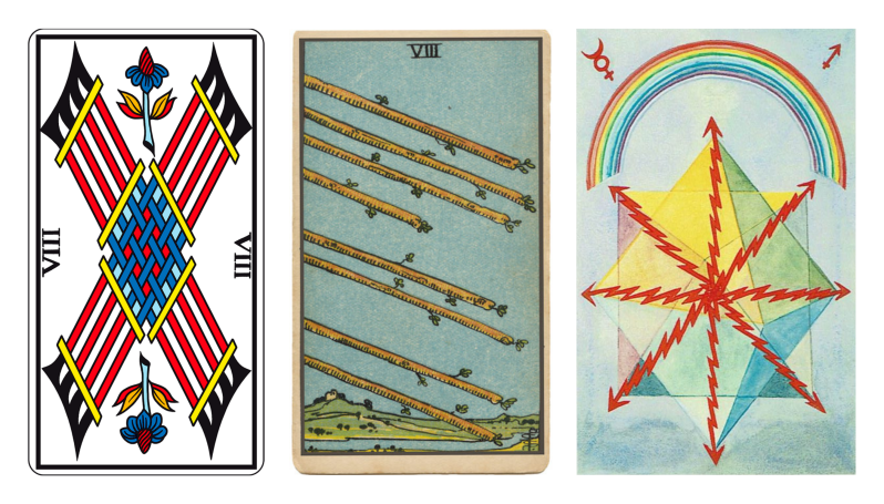 El Ocho de Bastos es la celeridad y el flujo veloz de la energía en movimiento.