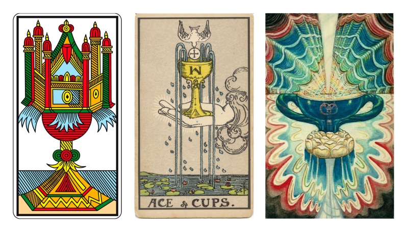 Con la energía de El As de Copas manifiestas la bendición y la inspiración, representando la semilla inicial de la emoción y la aspiración mística. Asumes la receptividad y la generosidad porque recibes el don espiritual desde la fuente inagotable, siendo el conducto de la energía femenina primigenia; Vives la atmósfera de la fertilidad, sabiendo que inicias una génesis de ideas con promesa de éxito.