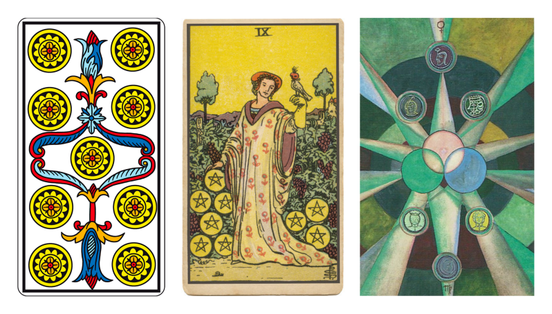 Con la energía de El Nueve de Oros manifiestas la culminación y la seguridad, representando los beneficios materiales obtenidos al aplicar principios superiores al trabajo. Asumes el disfrute y la independencia porque gozas de los frutos de tu trabajo con lujo y autosuficiencia, superando la presión circundante; Vives el control total, sabiendo que alcanzas la seguridad mediante la expresión del magnetismo etérico que conduce al lucro.